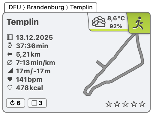 Laufen in Templin am 13.12.2025 Veröffentlicht am Samstag, 13. Dezember 2025 von Volker Schering Laufen in Templin am 13.12.2025 Weiterlesen