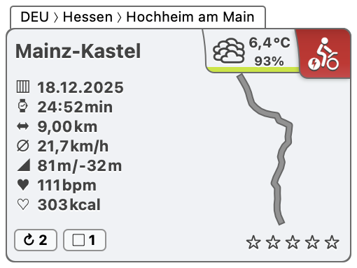 Radfahren in Mainz-Kastel am 18.12.2025 Veröffentlicht am Donnerstag, 18. Dezember 2025 von Volker Schering Radfahren in Mainz-Kastel am 18.12.2025 Weiterlesen