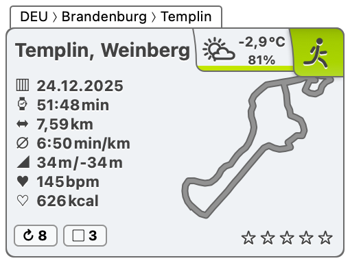 Laufen in Templin, Weinberg am 24.12.2025 Veröffentlicht am Mittwoch, 24. Dezember 2025 von Volker Schering Laufen in Templin, Weinberg am 24.12.2025 Weiterlesen