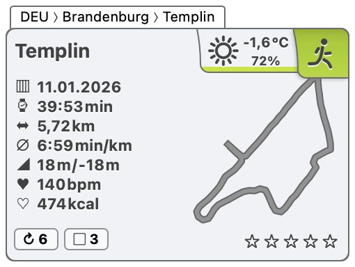 Laufen in Templin am 11.01.2026 Veröffentlicht am Sonntag, 11. Januar 2026 von Volker Schering Laufen in Templin am 11.01.2026 Weiterlesen