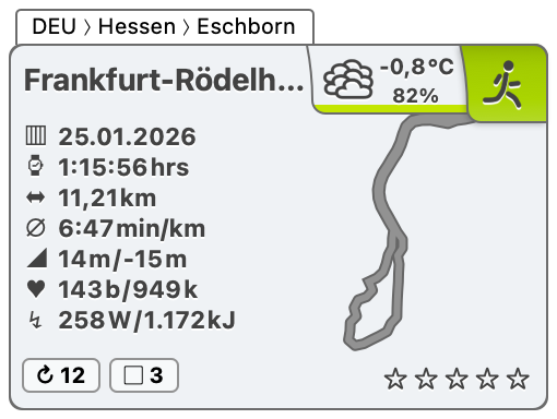 Laufen in Frankfurt-Rödelheim am 25.01.2026 Veröffentlicht am Sonntag, 25. Januar 2026 von Volker Schering Laufen in Frankfurt-Rödelheim am 25.01.2026 Weiterlesen
