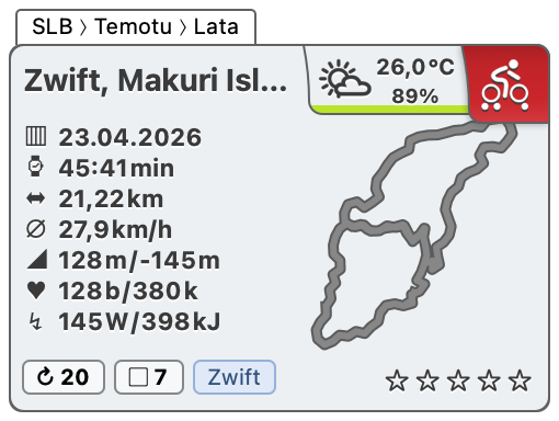 Radfahren in Zwift, Makuri Islands am 23.04.2026 Veröffentlicht am Donnerstag, 23. April 2026 von Volker Schering Radfahren in Zwift, Makuri Islands am 23.04.2026 Weiterlesen
